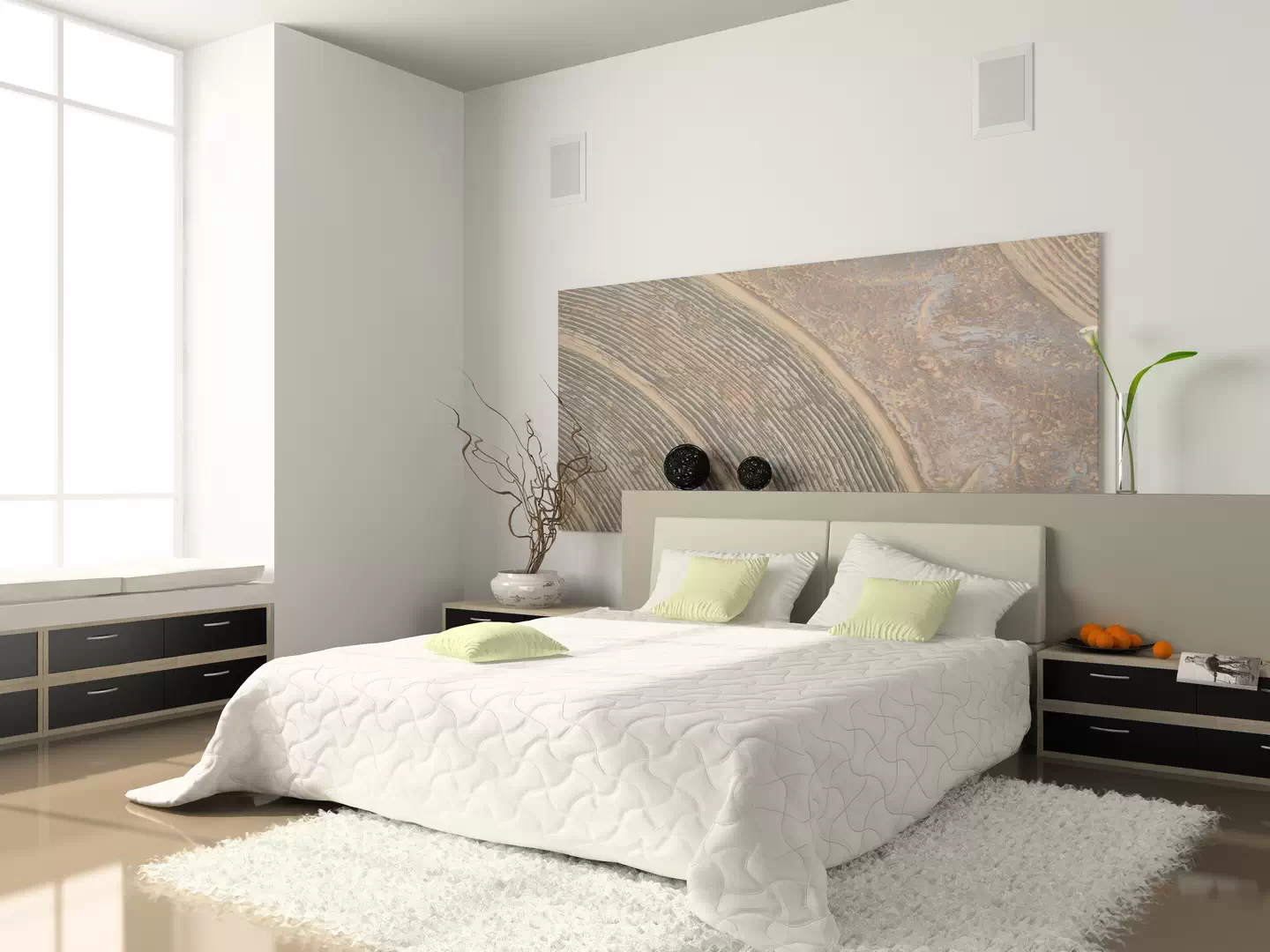 · Шкафы по обеим сторонам от кровати.