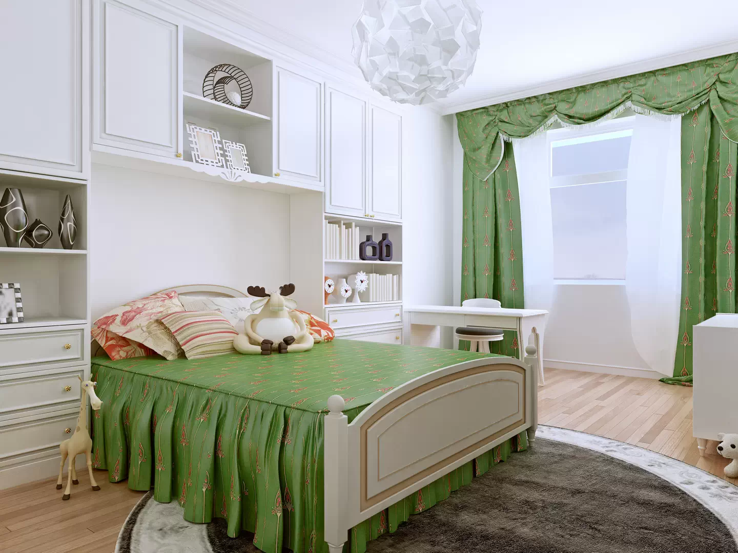 Светлый интерьер с яркими акцентами, уютным декором и лёгкой мебелью подойдёт для ребёнка любого возраста.
