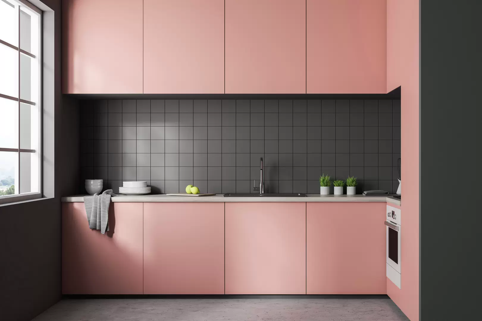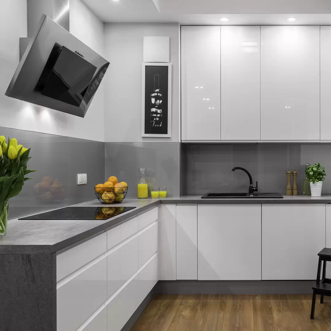 Г-образная кухня считается самой удобной. Она подходит как небольшим, так и просторным помещениям. В такой конфигурации удобно выстроить маршрут холодильник-мойка-плита и остаётся место для обеденного стола.