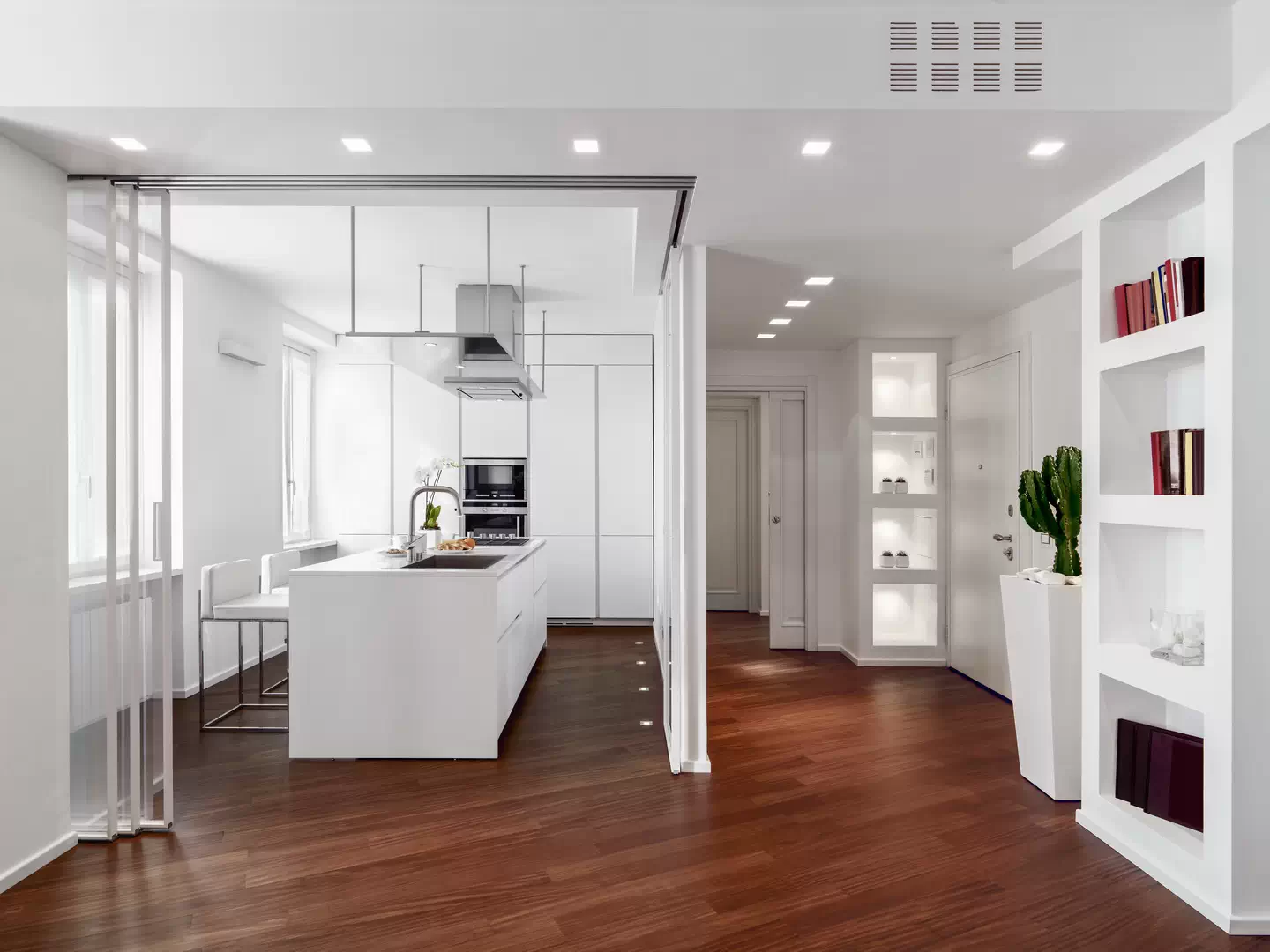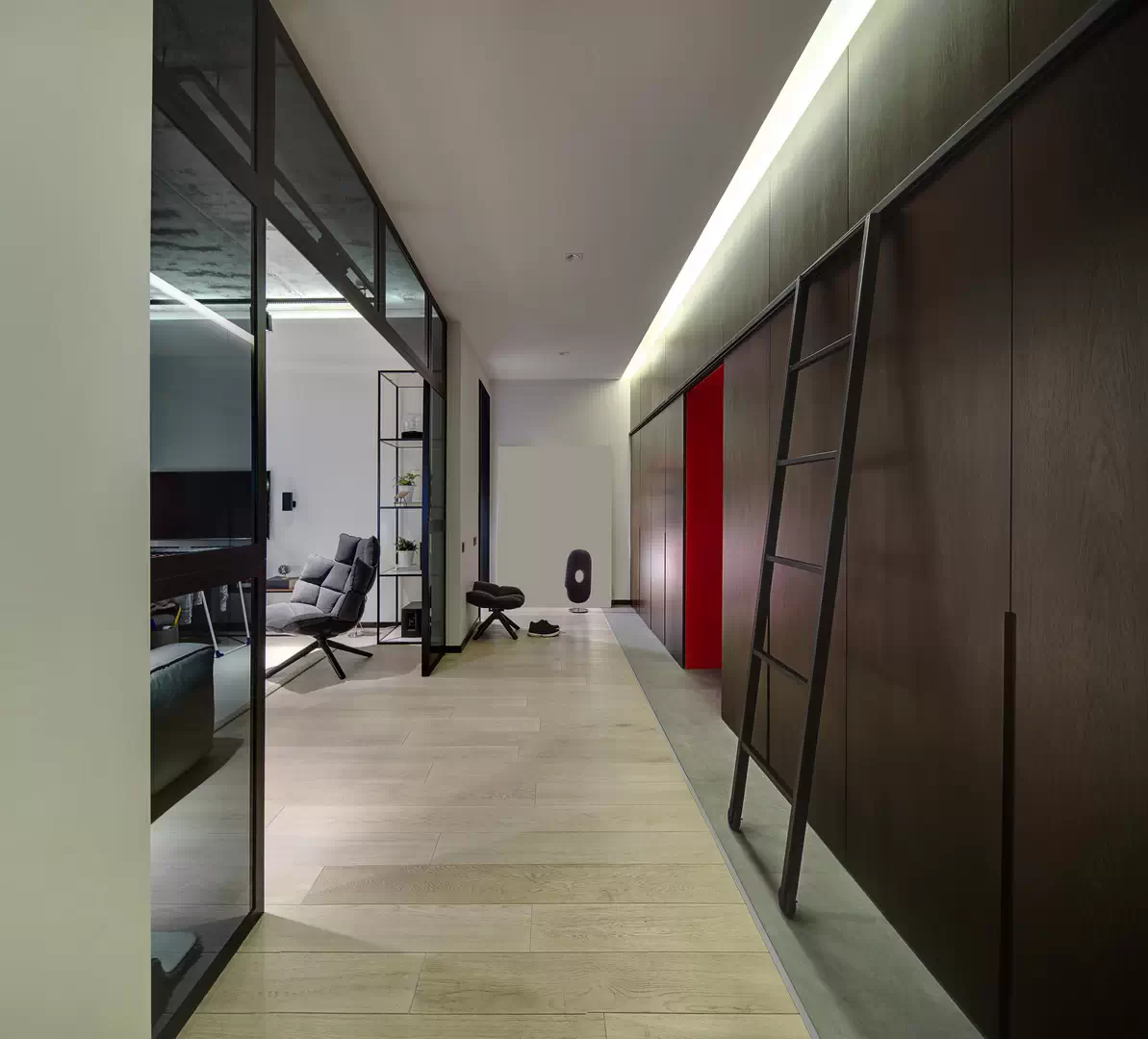 Квартира с кухней за стеклянной перегородкой